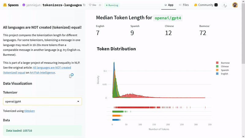 $\texttt{1 token} \sim \texttt{4 chars}$ rule of thumb